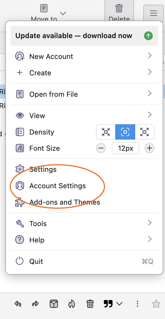 RESPONSE The gear is for application settings. Click on account settings. Did you not follow my directions to use the three-lined button and click on "Account settings"? You can also right click on the account name in the folder pane and select "Settings".