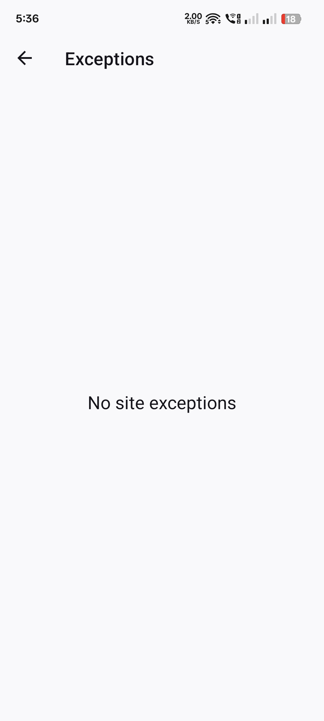 3. Technical Issue/Configuration The problem is related to the missing permissions toggle: Missing Toggle: In the main Settings \rightarrow Site settings page, the "Pop-ups and redirects" permission toggle is completely missing from the permissions list. Manual Exceptions Disabled: The "Exceptions" list is empty, and there is no visible option (like an 'Add' or '+' button) to manually add a domain to allow pop-ups. Tracking Protection Status: Enhanced Tracking Protection is currently set to the Standard setting.