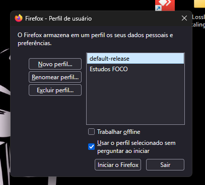 Tenho duas contas no Firefox, uma padrão que eu uso para jogos e consumir mídias de lazer e outra voltada para estudos e trabalhos. Porém eu queria um atalho que fosse mais facilmente de abrir sem precisar abrir a tela de escolha de perfil, pulando direito para o navegador. Quero saber se há alguma possibilidade de contornar isso e eu criar um atalho diferente para as duas contas. Algo parecido com o que faz no Opera GX. Estou usando o Windows 11 e não sei como fazer configurações mais profundas.