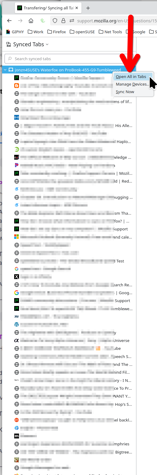 There was an option to open all tabs from another devices but there's no more. On android and on desktop too.