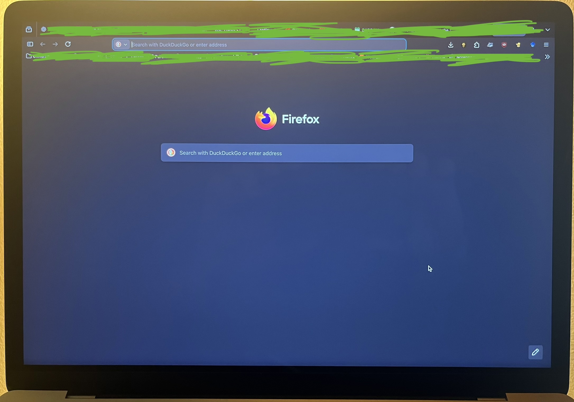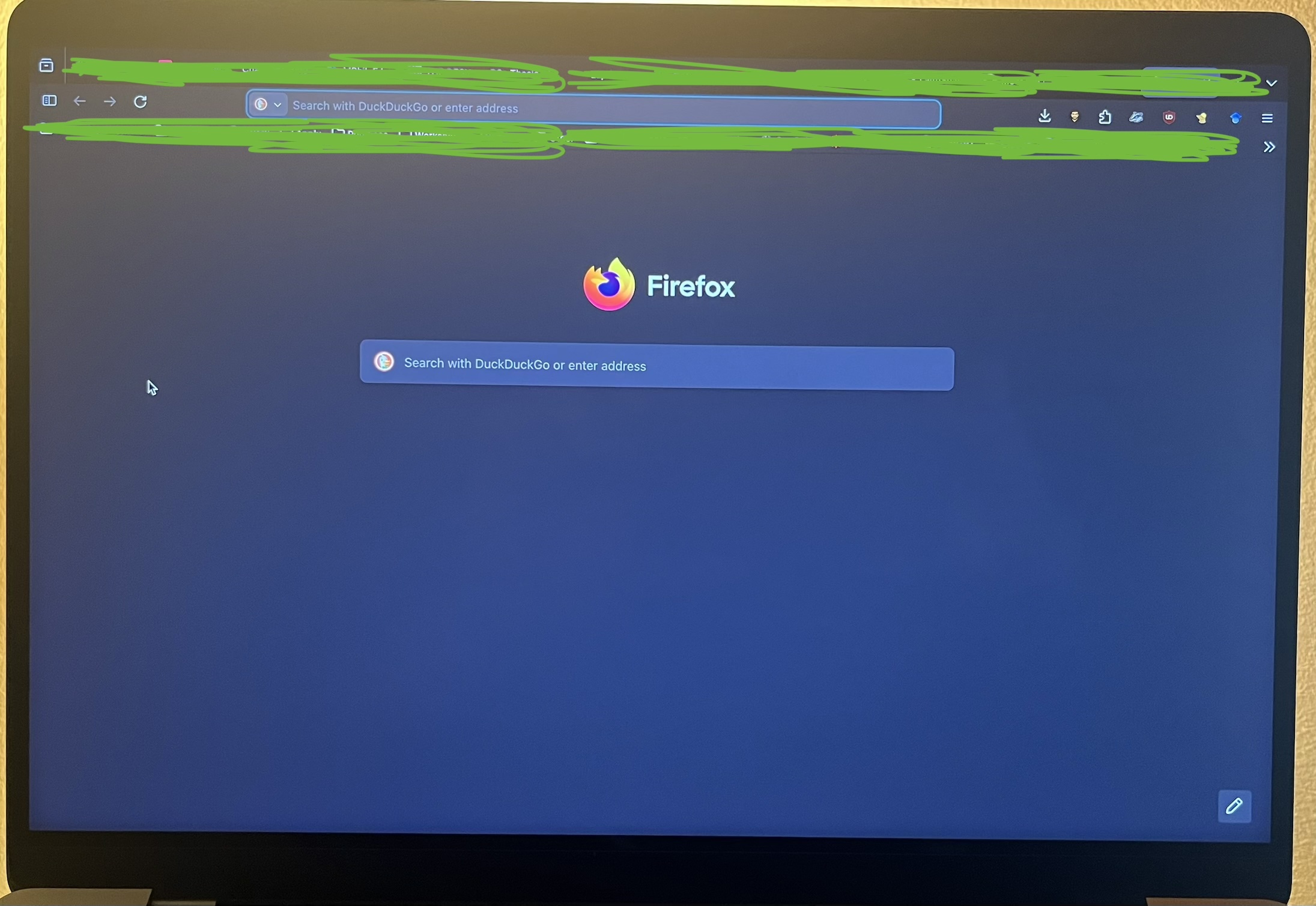 I am not too what exactly causes this (I suspect long periods of inactivity/not interacting with the browser) but when I switch back to one of my firefox windows on my laptop's monitor I get this black border/padding on the side/around my broswer.
